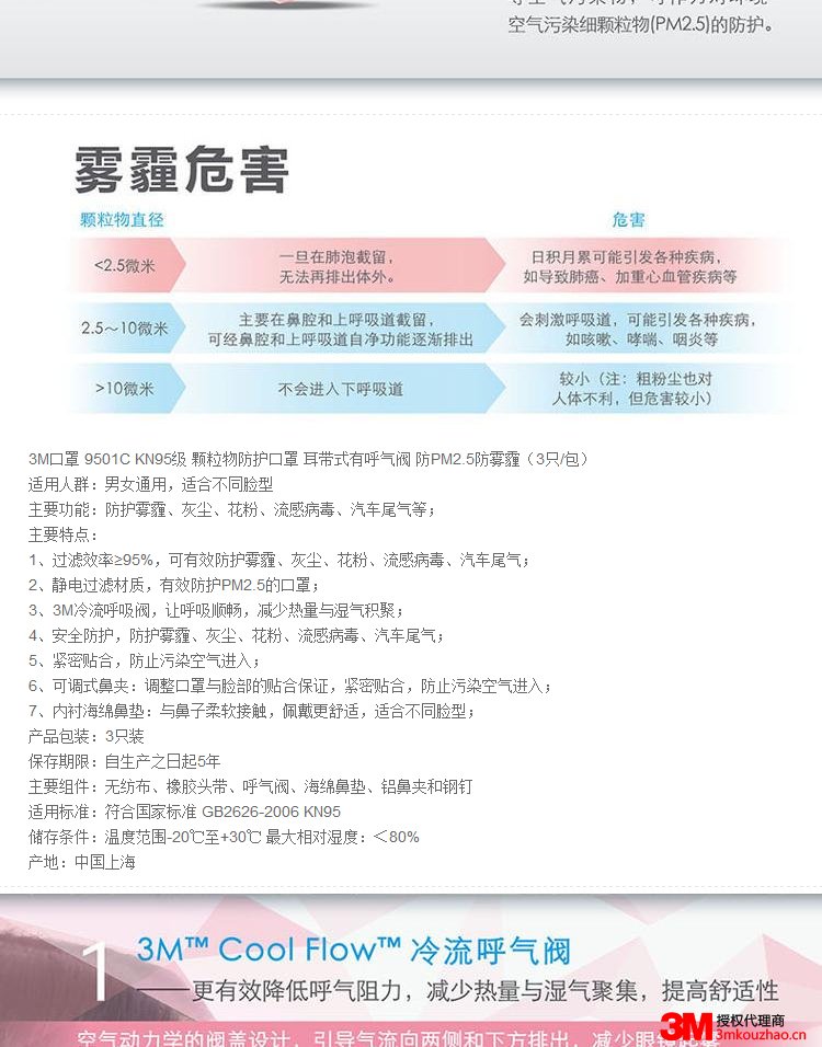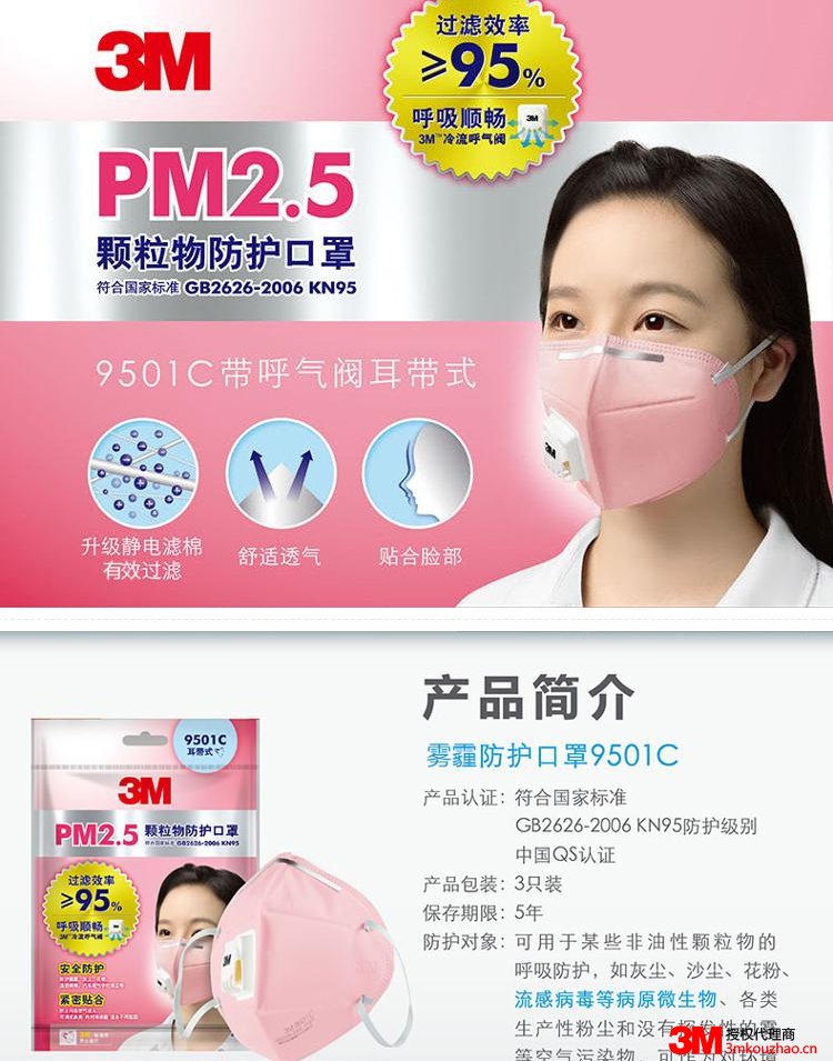 3M9501C口罩防PM2.5口罩有從低到高的不同過濾效率級別,3M防塵口罩分別由產品所適用的標準所規定,例如,中國國家標準GB2626-2006規定了3個過濾效率級別(90%、95%、99.97%)。3M9501C口罩防PM2.5口罩廣泛用于職業性防護,針對的是生產作業過程中產生顆粒物,如礦塵、鑄造煙塵、焊接煙、藥物粉塵、木粉塵等等,政府對這類PM2.5口罩應用具體的法規、標準,對選用進行規范和指導。